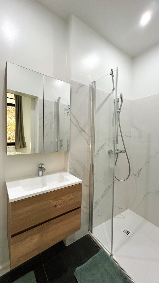Situé au premier étage d’une petite copropriété bien entretenue, ce bien comprend une cuisine entièrement équipée (réfrigérateur, congélateur, rangements, évier, plaques de cuisson électriques, hotte, four, micro-ondes, vaisselle, casseroles, etc.), un séjour lumineux avec balcon à l’avant, ainsi qu’une chambre cosy avec salle de bain attenante (WC et douche).