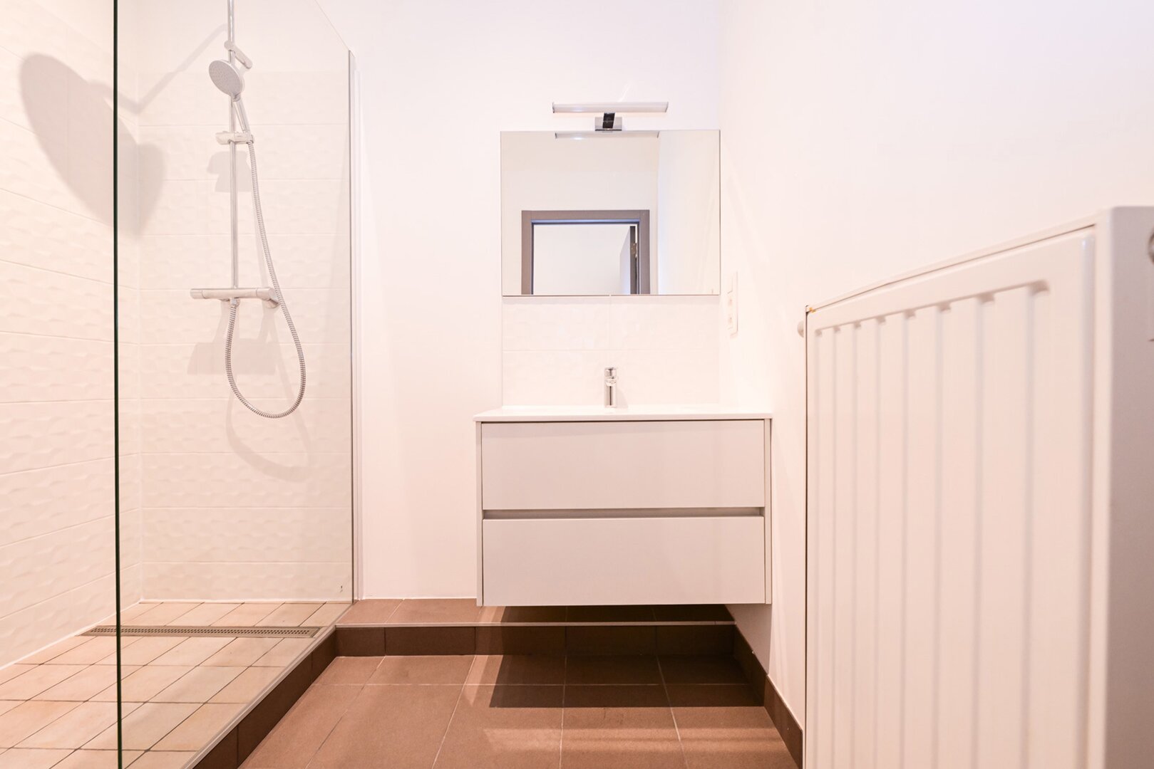 Situé au rdc d’une petite copropriété, le bien se compose d’un hall d’entré desservant à l’arrière un agréable salon avec cuisine américaine super équipée, accès au beau jardin, WC séparé, buanderie, chambre côté avant avec salle de douche. Double vitrage, PEB C, grande cave comprise. A visiter !!