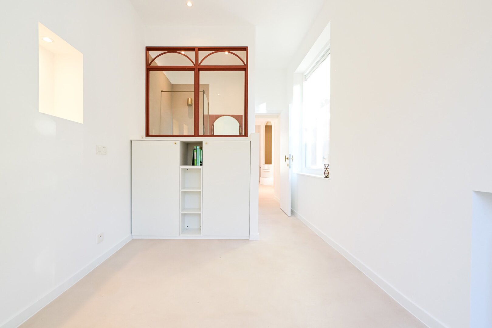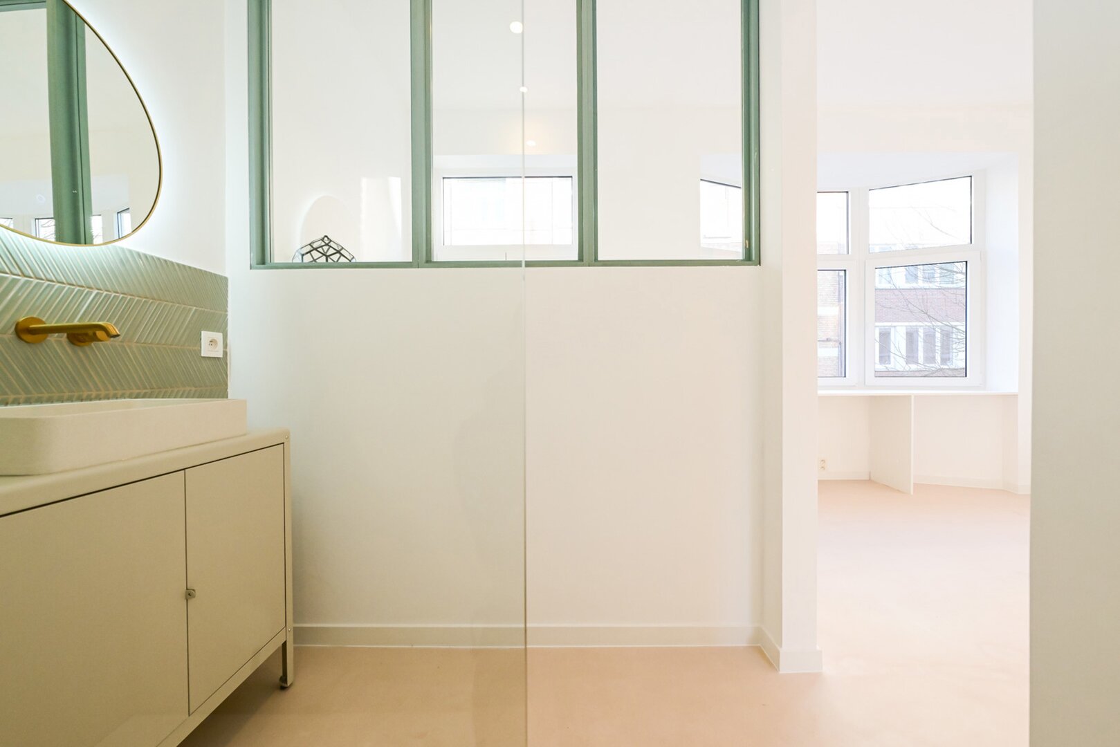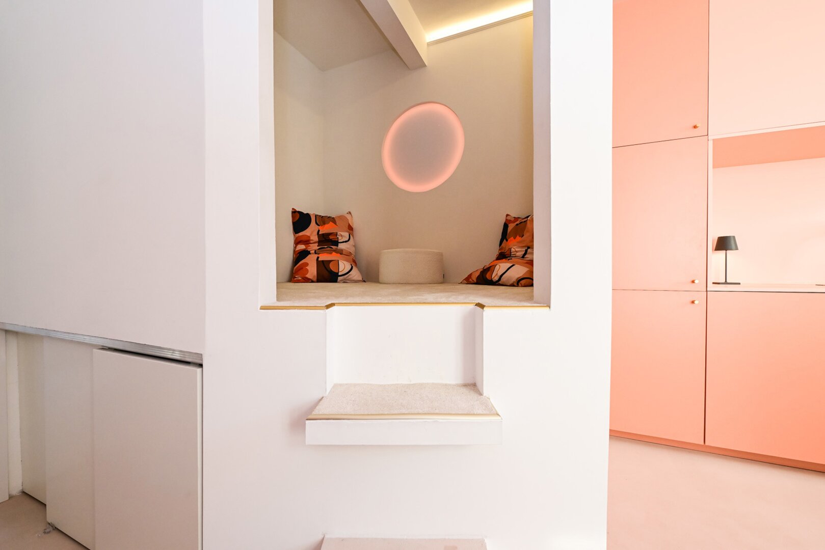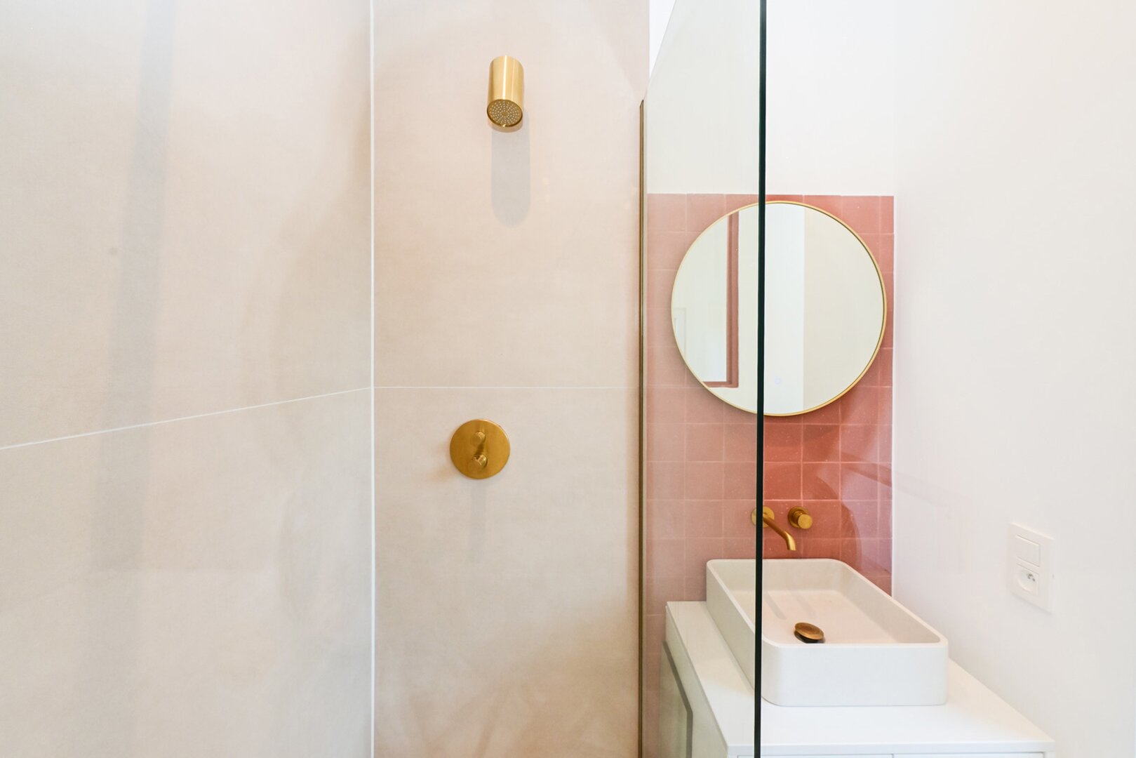 Situé au premier étage d’une petite copropriété sans charges, ce bien se compose actuellement de trois belles pièces en enfilade : une chambre avec salle de bain attenante à l’avant, une cuisine entièrement équipée, un coin salon capsule ultra cosy et, à l’arrière, une deuxième chambre disposant également de sa propre salle de bain ainsi que d’une belle plateforme privative offrant la possibilité d’aménager une terrasse.
