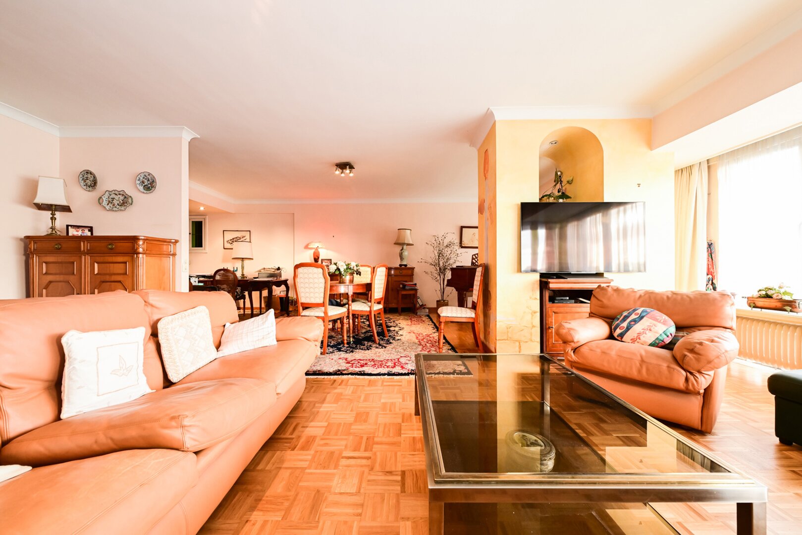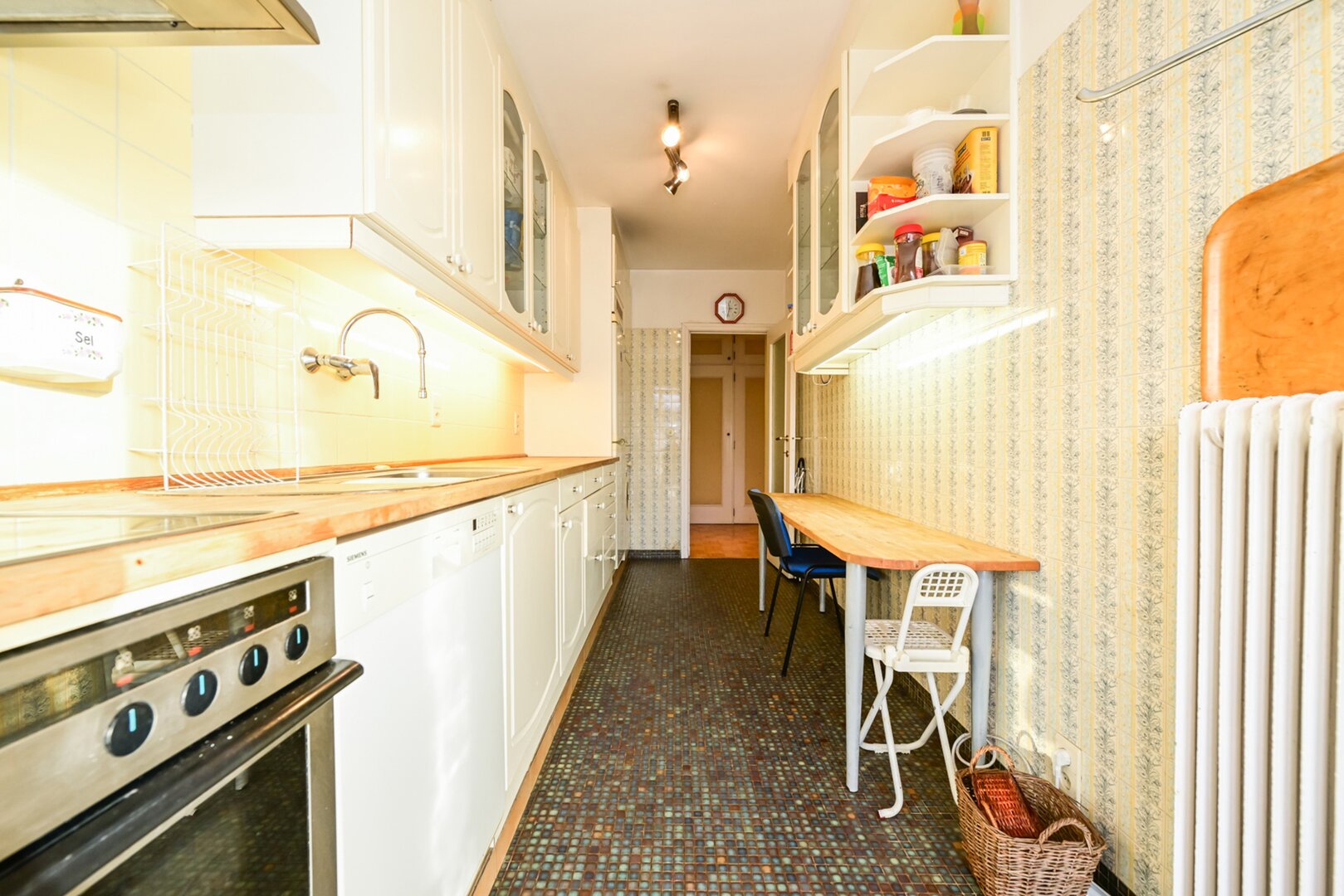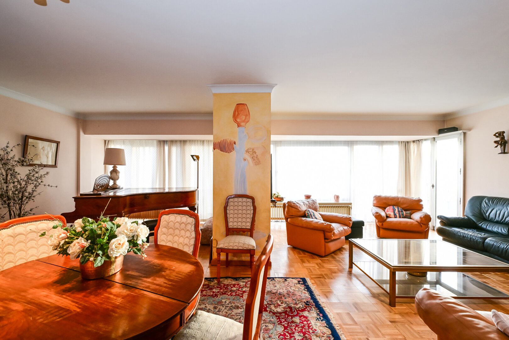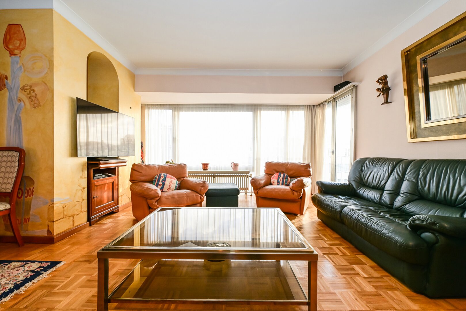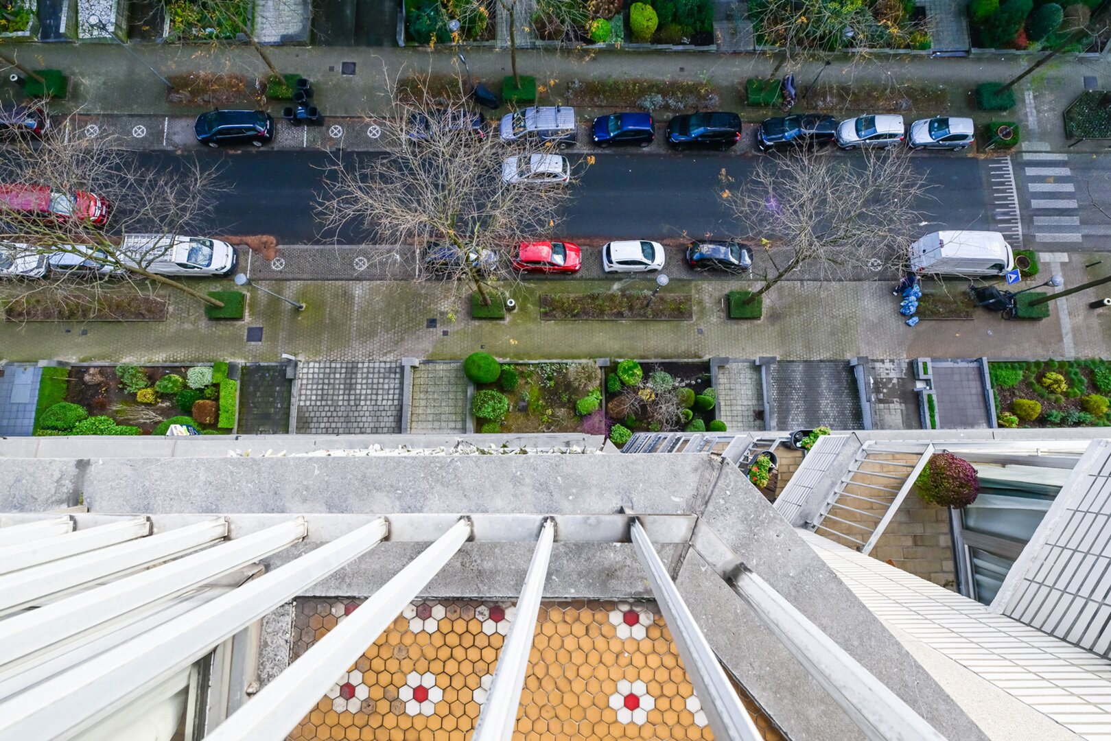 Situé au huitième étage avec ascenseur, le bien se compose comme suit : porte sécurisée, hall d’entrée desservant toutes les pièces de l’appartement. Côté rue : vaste et lumineux séjour, cuisine équipée avec espace buanderie, accès au balcon avant, WC séparé, placard, salle de bain avec baignoire et WC, placards. Côté arrière, trois belles chambres avec terrasse arrière. Cave privative, beau parquet, box de parking en option à 30 000€, PEB D-.