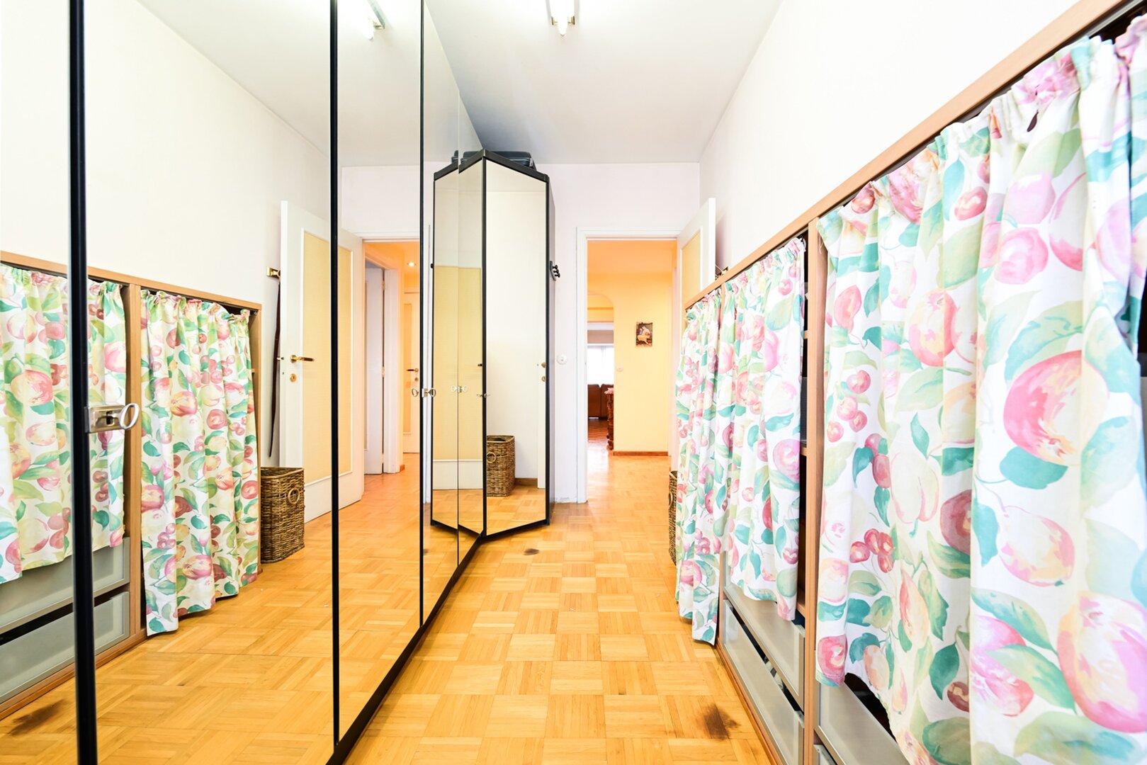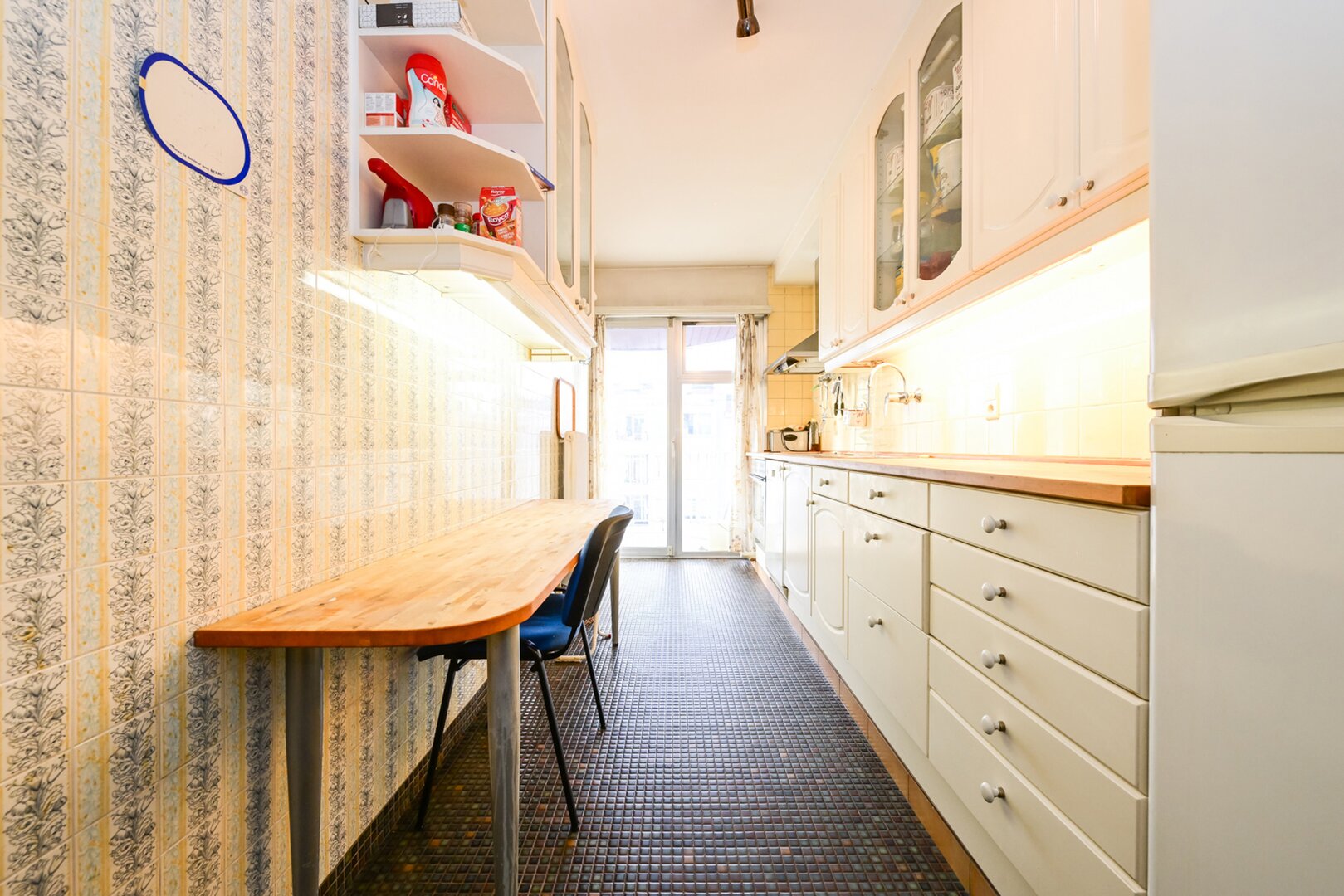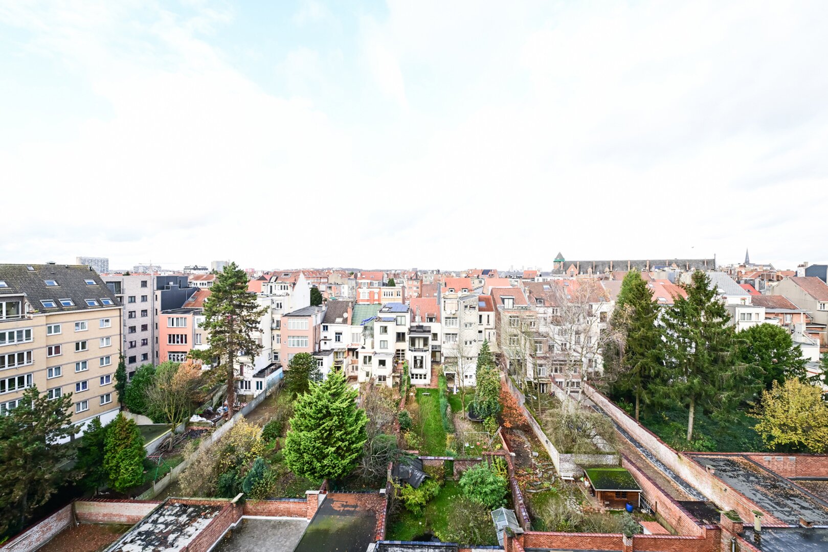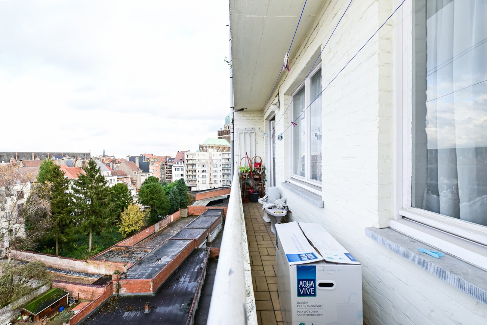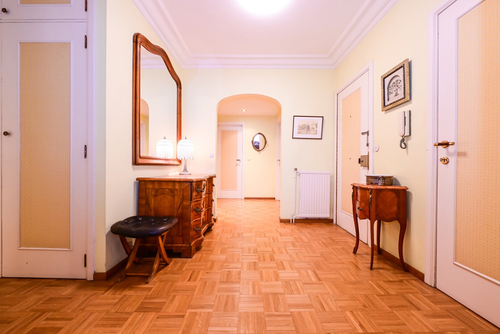 Situé au huitième étage avec ascenseur, le bien se compose comme suit : porte sécurisée, hall d’entrée desservant toutes les pièces de l’appartement. Côté rue : vaste et lumineux séjour, cuisine équipée avec espace buanderie, accès au balcon avant, WC séparé, placard, salle de bain avec baignoire et WC, placards. Côté arrière, trois belles chambres avec terrasse arrière. Cave privative, beau parquet, box de parking en option à 30 000€, PEB D-.