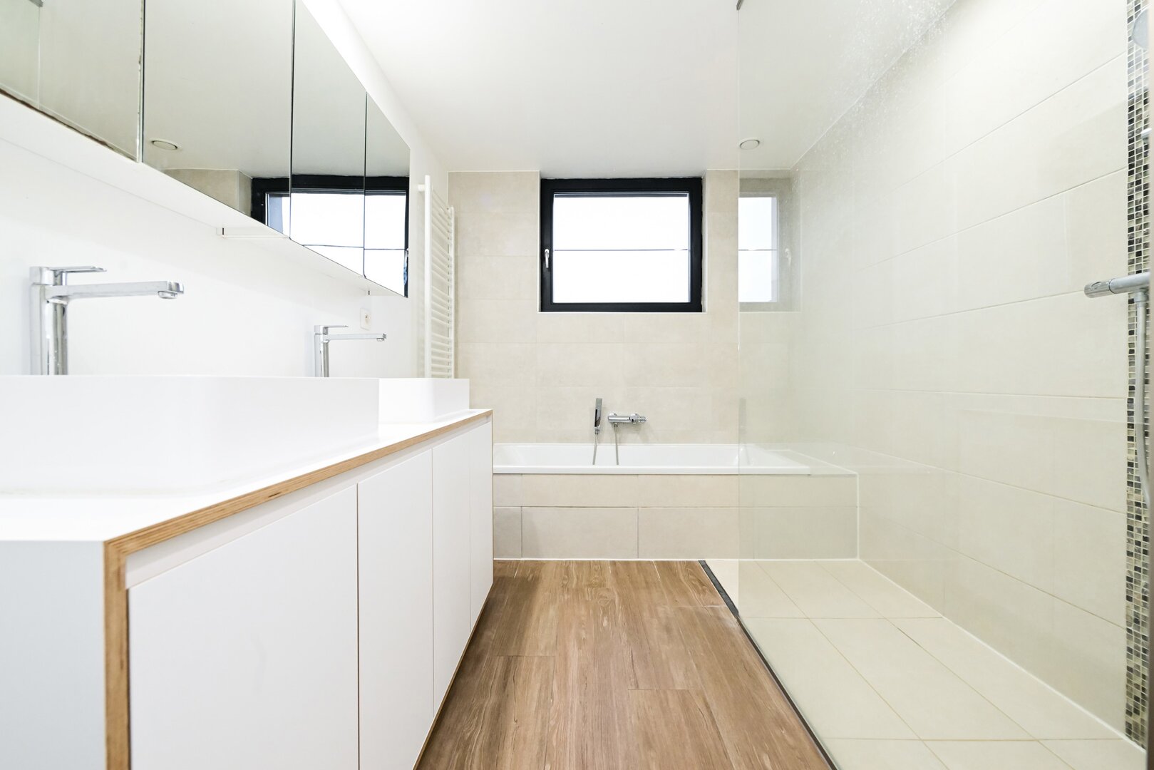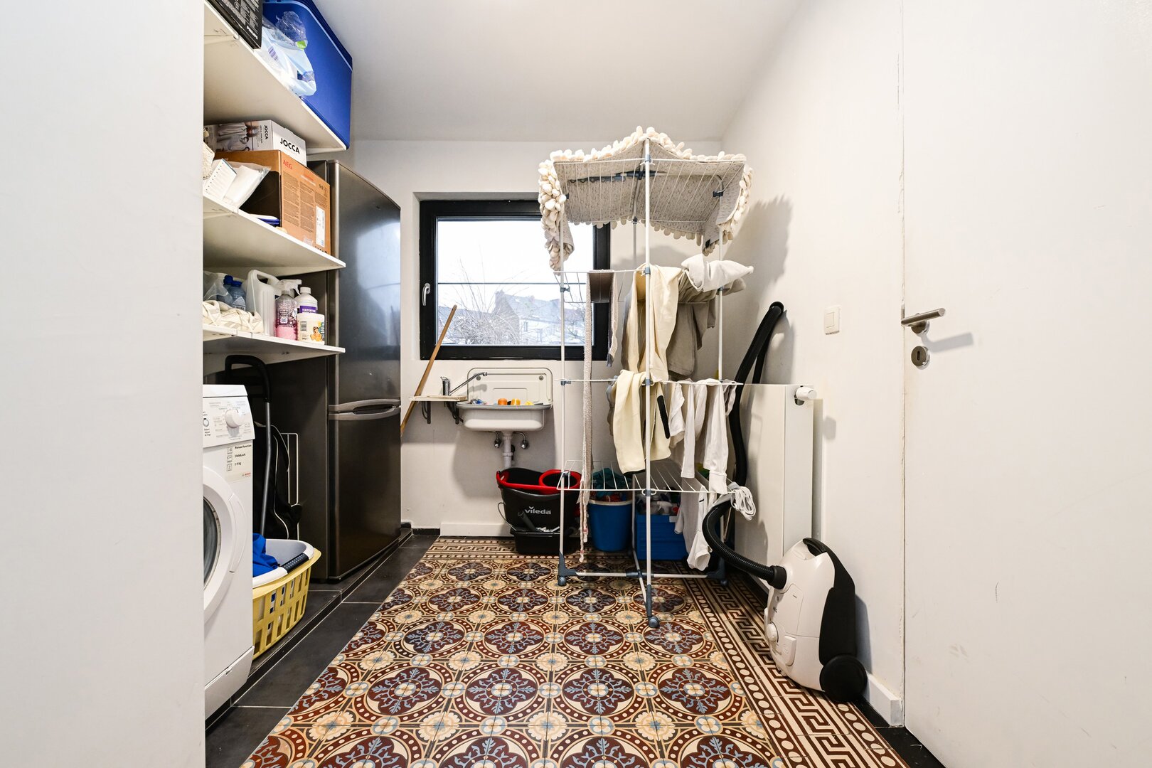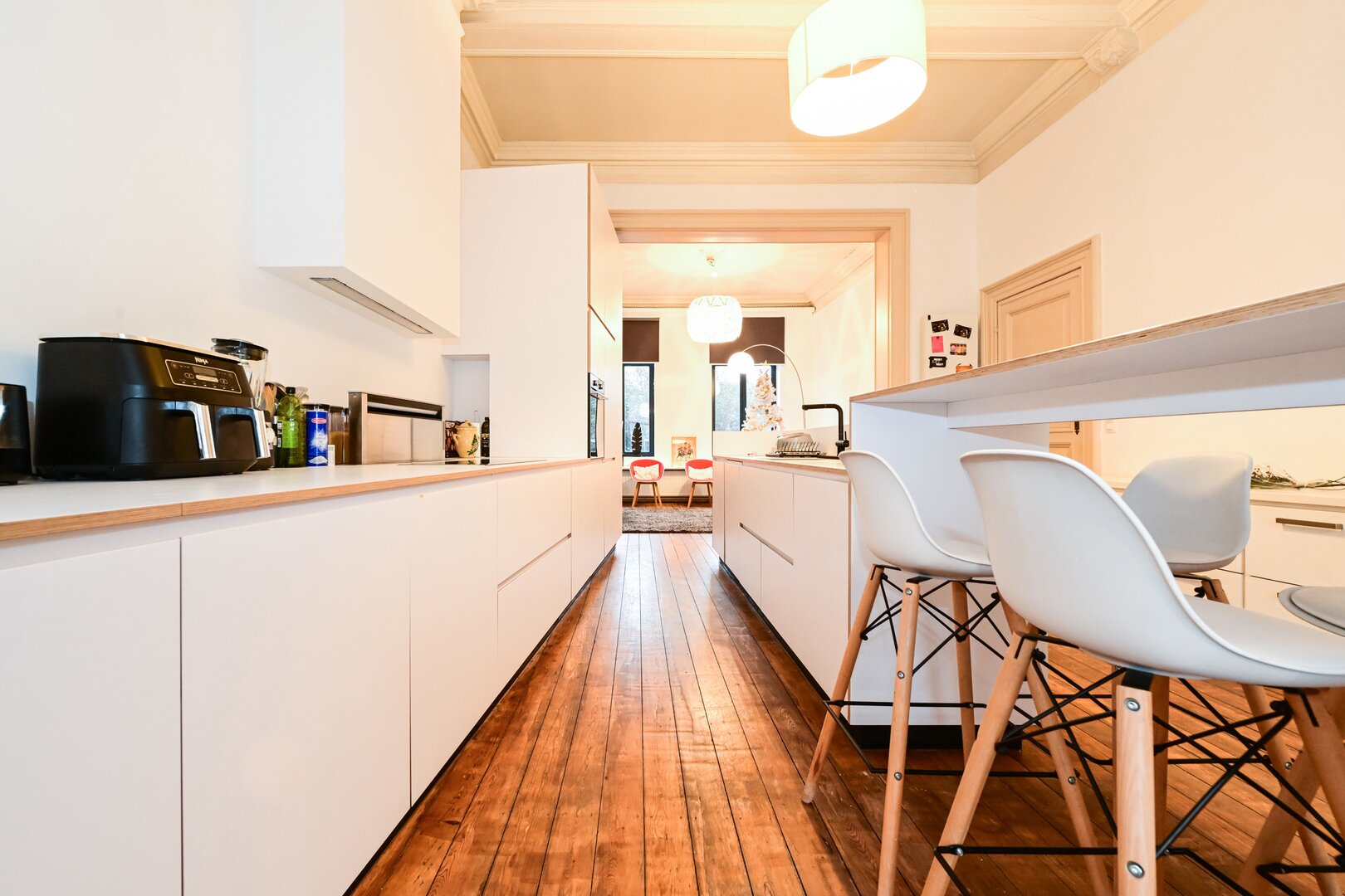 Dès l’entrée, vous serez séduit par un grand hall d’entrée avec un carrelage d’époque. Le salon lumineux, avec ses belles hauteurs sous plafond, ses moulures et son parquet, offre un espace chaleureux, ouvert sur une cuisine moderne super équipée, prolongée par la salle à manger, avec un accès direct au jardin de ± 200 m², orienté ouest. Au niveau intermédiaire, la maison dispose d’une spacieuse buanderie ainsi que d’une grande salle de bain avec douche et toilette.