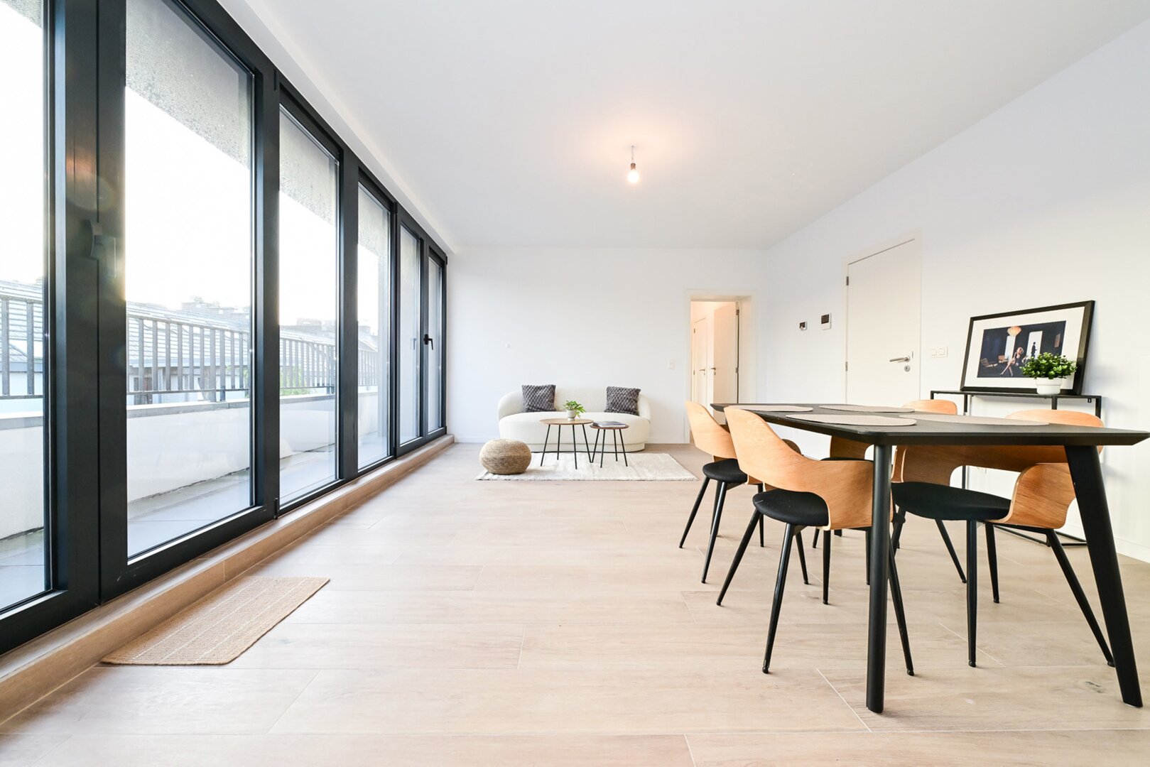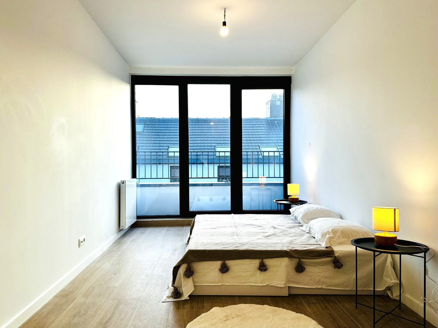 LAKEN - Dit nieuwe project met zijn verzorgde afwerking zal u zeker bekoren! Ten eerste door zijn ligging: tussen het Bockstaelplein en het Tour & Taxis-site, op een steenworp afstand van het openbaar vervoer, de winkels en restaurants van de Marie-Christinestraat of van Tour & Taxis. Het centrum van Brussel ligt ook vlakbij. Ten tweede door zijn menselijke schaal: 24 appartementen in een binnenhof. Ten derde door de indeling van de appartementen, die allemaal beschikken over: een grote leefruimte, een superuitgeruste open keuken, 2 of 3 mooie slaapkamers, een grote badkamer, een apart toilet met wastafel, een wasruimte, een groot balkon of een terras. Ten slotte door de innovatieve oplossingen om energie te besparen: dubbele beglazing, zonnepanelen, enz. EPC B. Direct beschikbaar! Onder registratierechten en BTW. Wilt u snel een van de nog beschikbare appartementen bezichtigen? Neem dan contact met ons op via 02 / 420 65 01.